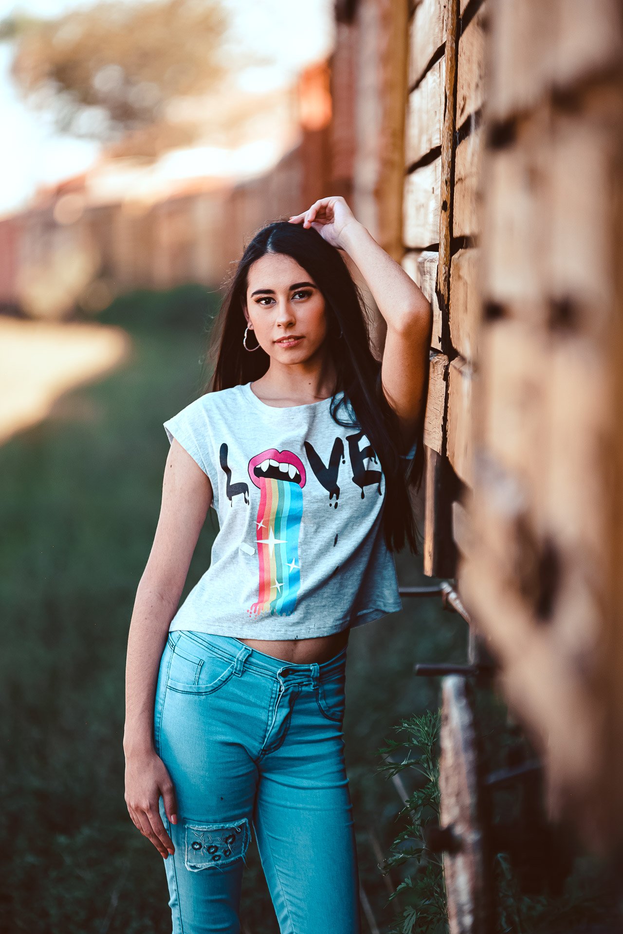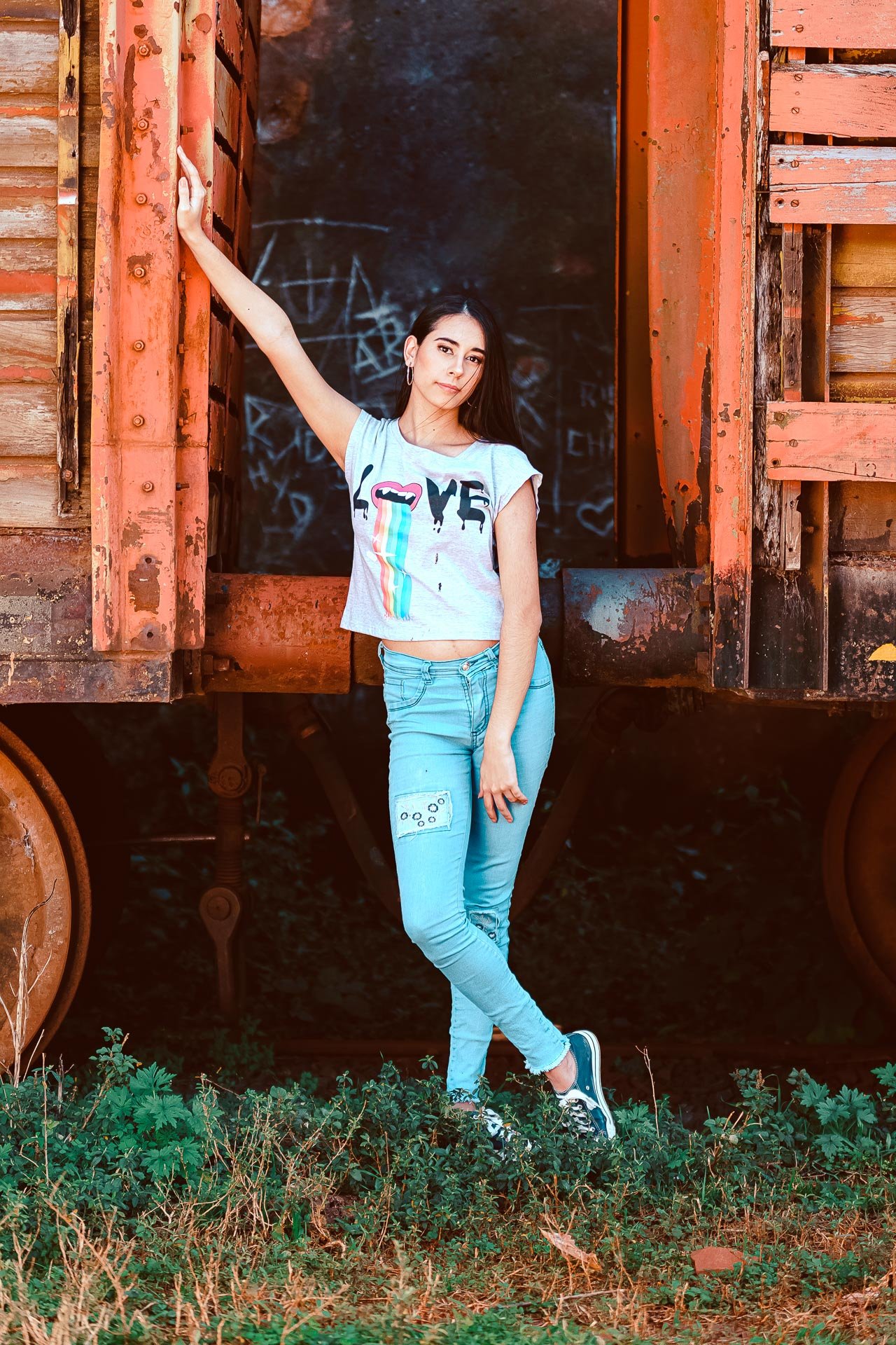 Realizamos la sesión en el Parque Centenario, en el terreno aledaño a éste y también en la estación de trenes de Apóstoles Misiones, comenzamos a las 11 de la mañana con el maquillaje que realizó Luciana Monchesky. Después de algunas fotos resolvimos hacer una pausa para poder aprovechar el atardecer y lograr esas fotos con los colores que el ocaso puede regalarnos.